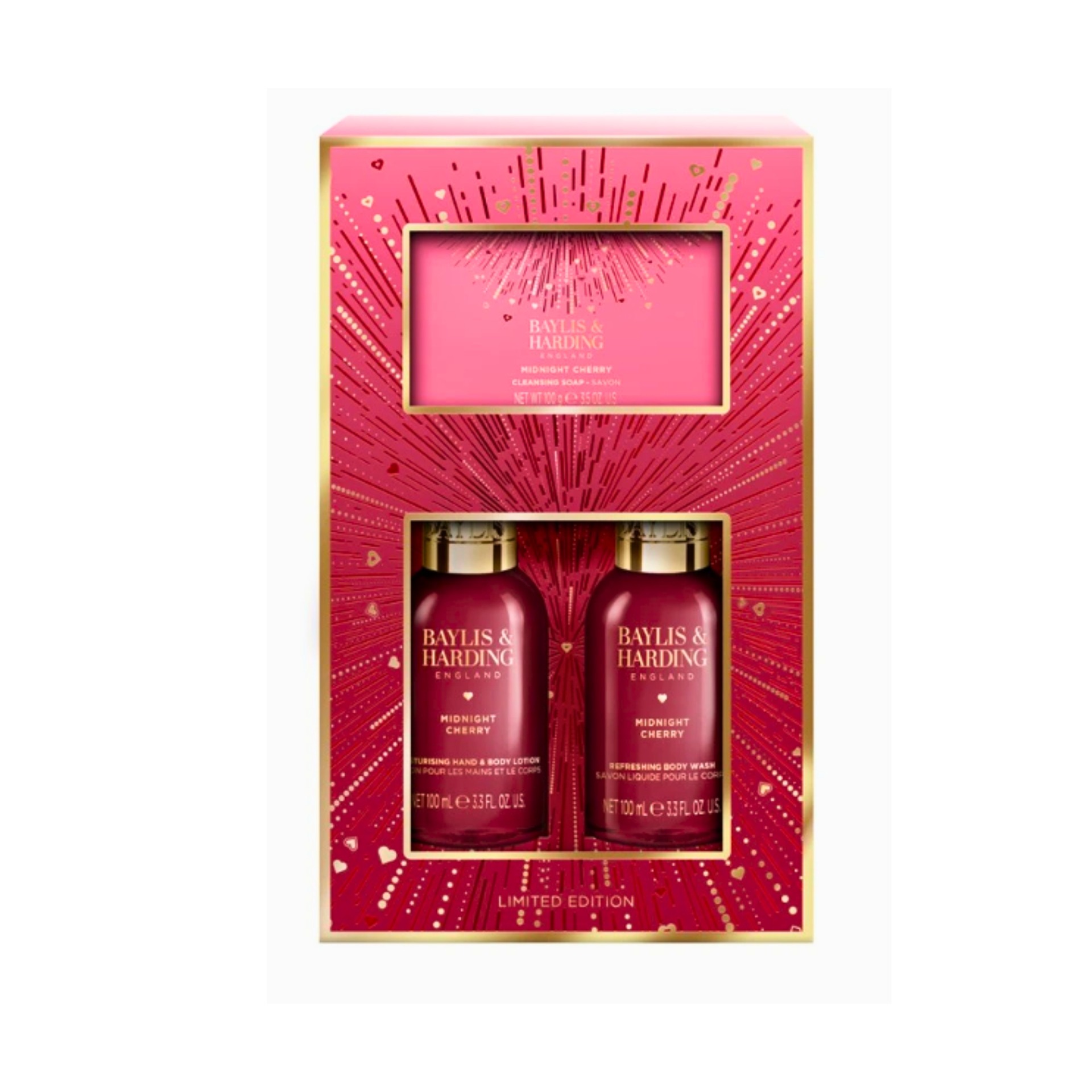 Šťavnatá vôňa čerešní, mandlí a likéru prebudí vaše zmysly a vy si môžete vychutnať chvíle relaxu. Svieži sprchový gél a tuhé mydlo jemne čistia pokožku tela a rúk, kým hydratačné mlieko im dodáva potrebnú výživu.
